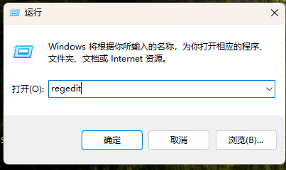 1、用快捷键 Win+R 打开命令行工具,输入 regedit 打开注册表