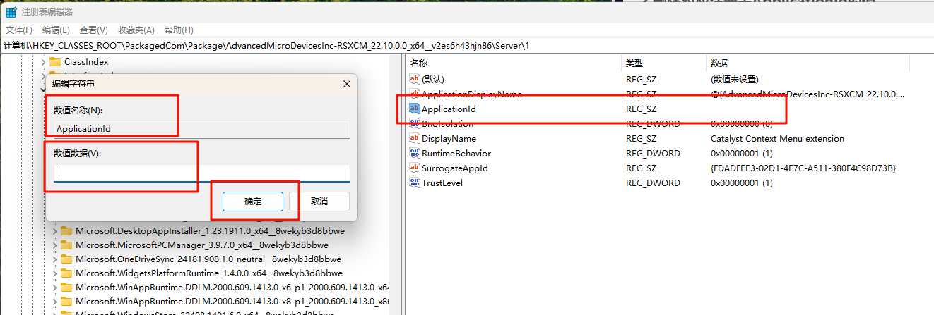 例如路径为:HKEY_CLASSES_ROOT\PackagedCom\Package\AdvancedMicroDevicesInc-RSXCM_22.10.0.0_x64__v2es6h43hjn86\Server\1