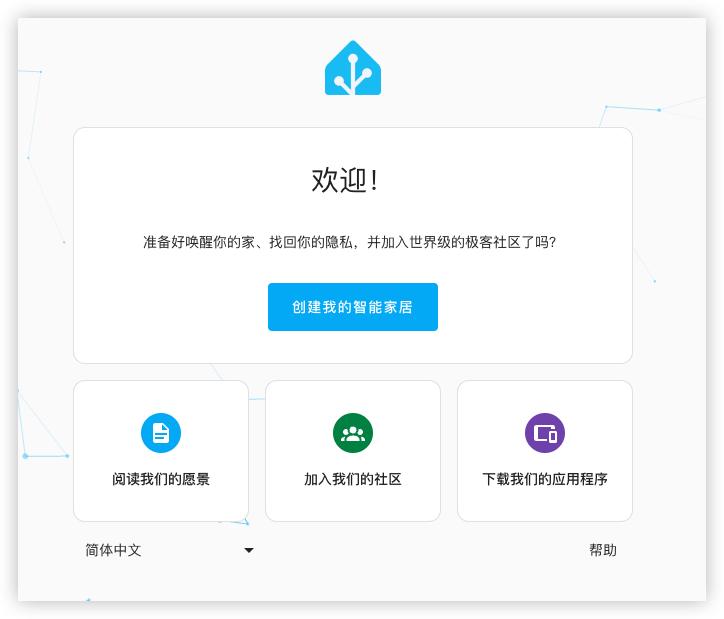 安装完成后,浏览器输入 http://IP:8123 按照提示一步一步继续操作。